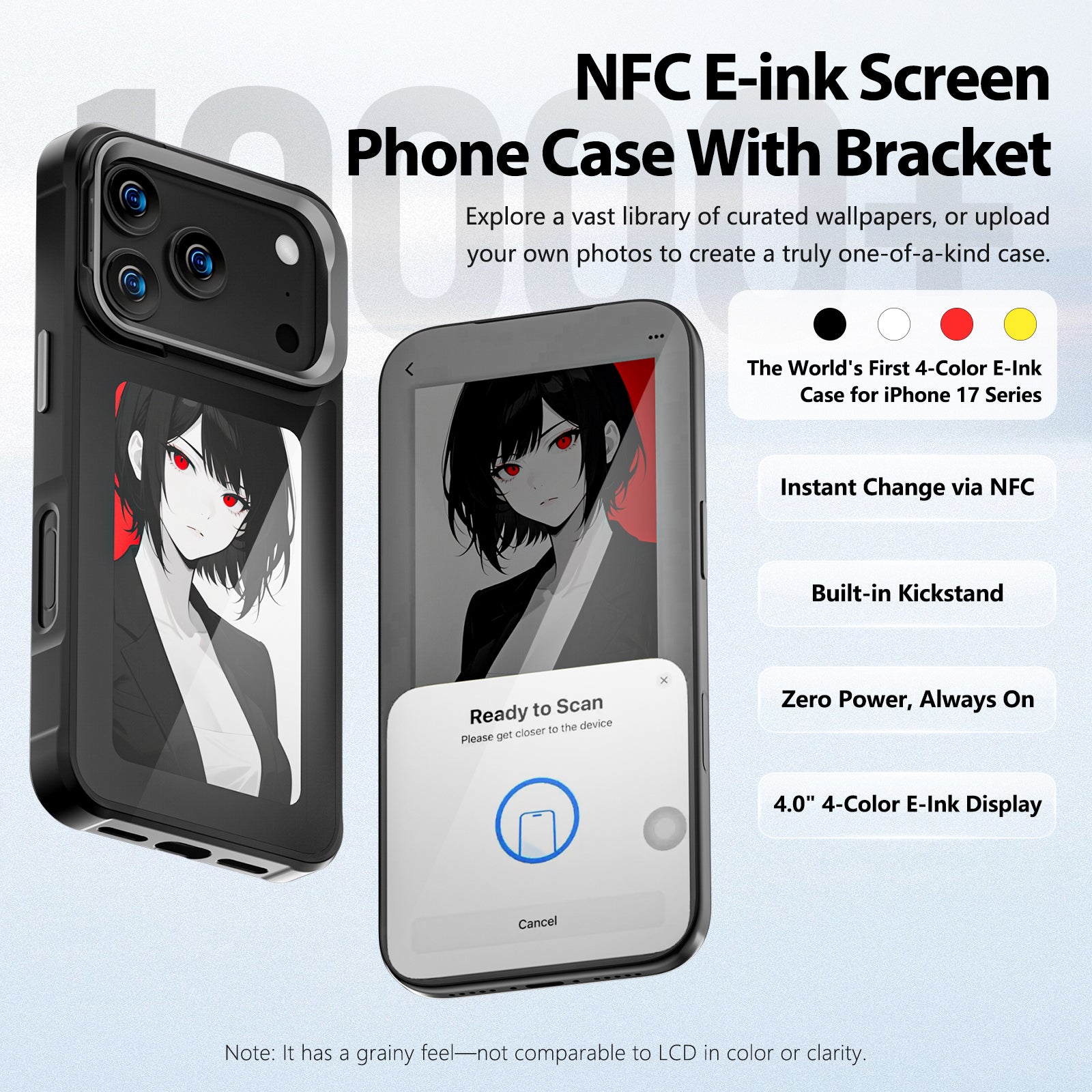 E-Ink iPhone 17 Phone Case NFC display on Phone Case 4.0" HD Four Color DIY Photo Display
